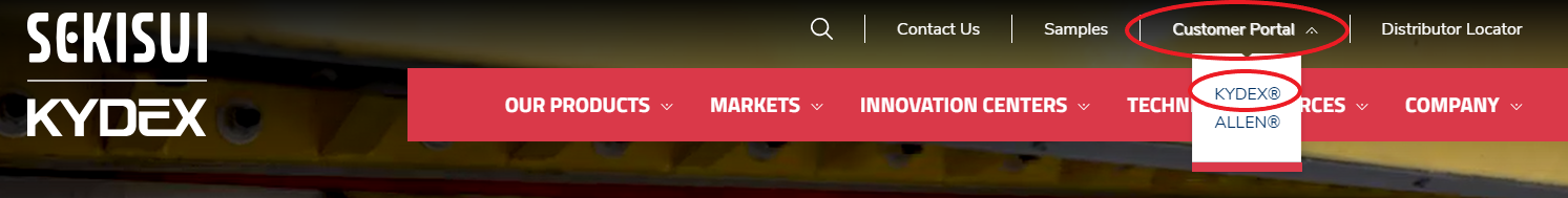 You can also access the Portal by going to our website at https://kydex.stage.mediaproper.com and select “Customer Portal” -> “KYDEX®” from the list at the top of the page.