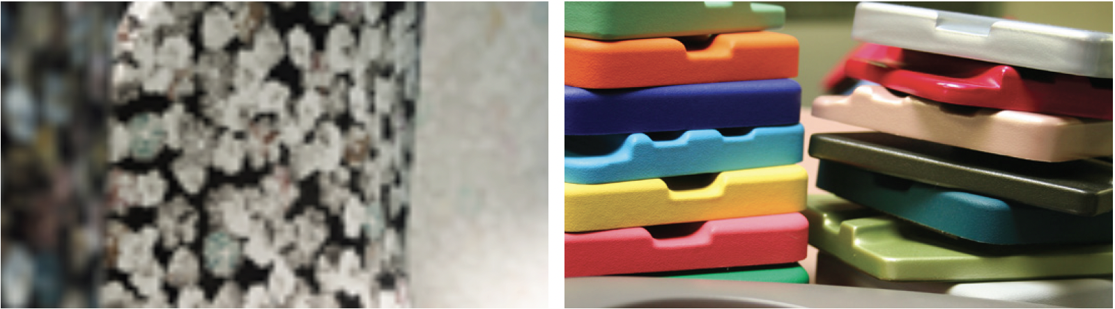 Thermoplastics are recyclable and contain no VOCs, making them an environmentally sound solution that supports end-of-life recyclability and life-cycle design. The thermoforming manufacturing processes do not outgas VOCs or create any hazardous waste to dispose of.