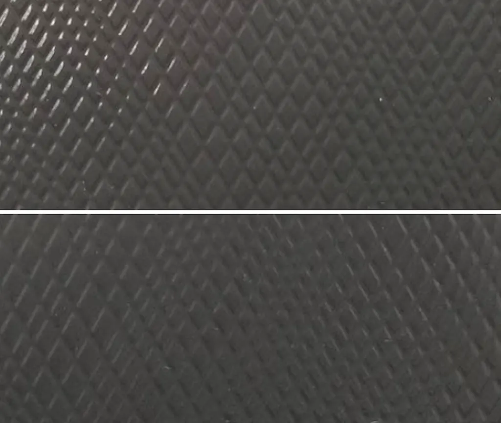 Linear designs are the most affected, especially on parts with complex geometries or deeper draws. Texture stretch and distortion are less noticeable in random designs, which are preferable for parts with deep draws or complex geometry.
