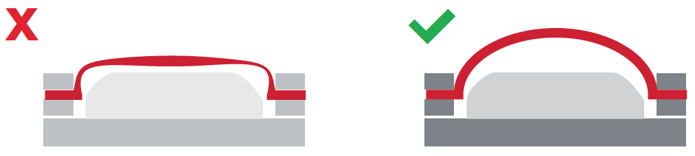Pre-blowing the material during the forming process prevents texture stretch and distortion by distributing the entire sheet more evenly over the tooling.