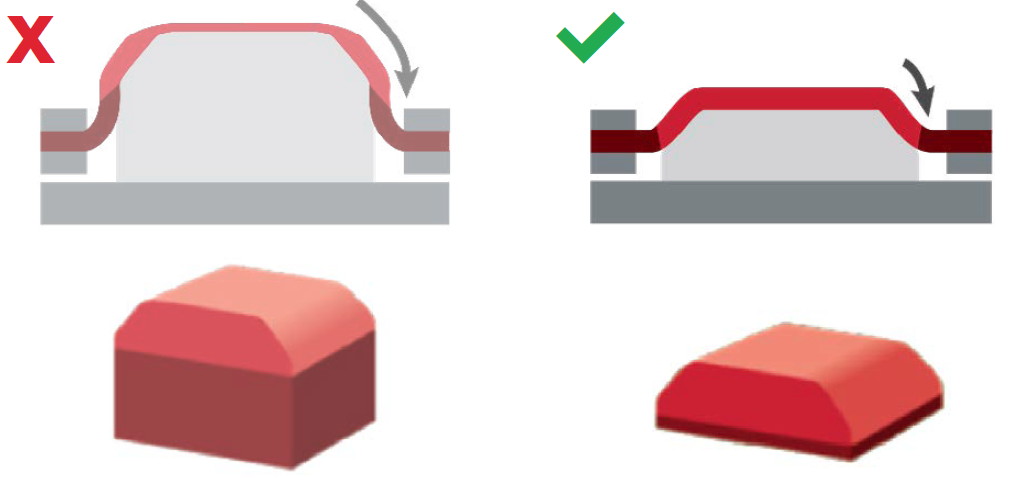 | Finished Part<br>Texture | Part texture will stretch;<br>distortion is proportional to draw<br>ratio and geometry of tooling | Part texture will match<br>tooling texture;<br>no stretch or distortion |