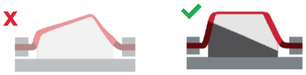 Geometries that enclose valleys or square features may entrap dirt and require additional scrubbing to clean.