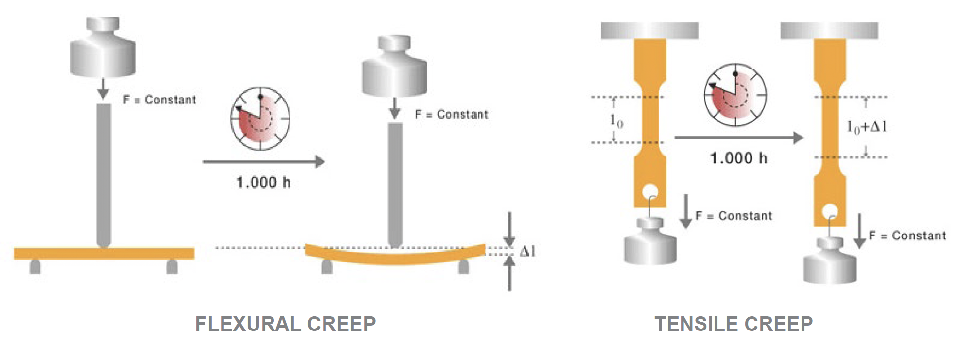 Creep and Heat Distortion Temperature (HDT) are both meaningful tools for comparing the relative performance of thermoplastics and in designing parts.