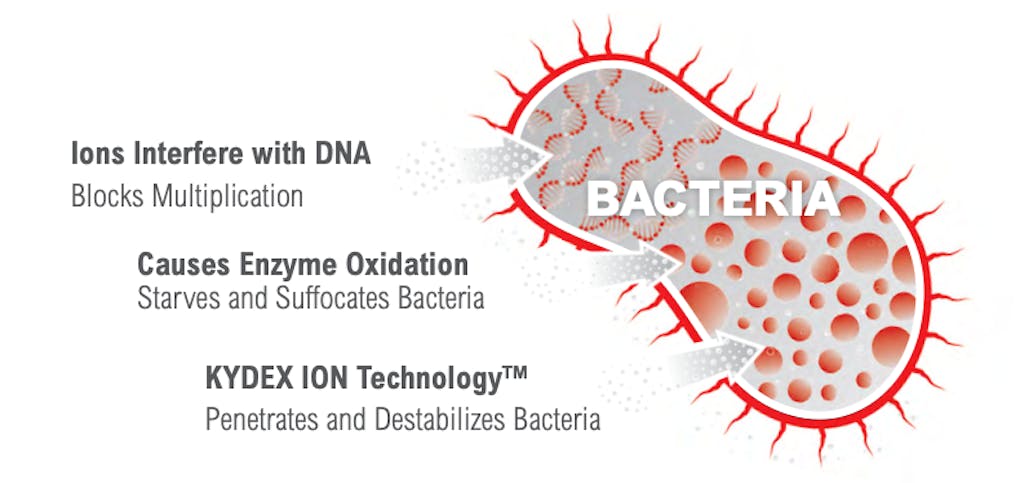 New KYDEX ION Technology™ is 99% effective at inhibiting the growth of stain and odor causing bacteria on KYDEX® Thermoplastics. KYDEX ION Technology™ interferes with bacteria DNA, which prevents stain and odor causing bacteria from multiplying on the treated thermoplastic sheet.