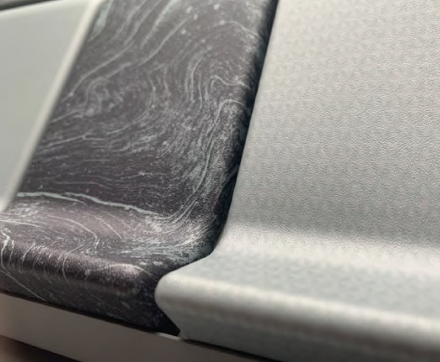 Strategic use of textures for different applications throughout the rail car interior can elevate passenger mood and experience. KYDEX® Thermoplastics are available in multiple variations of texture to promote innovative tactile design.