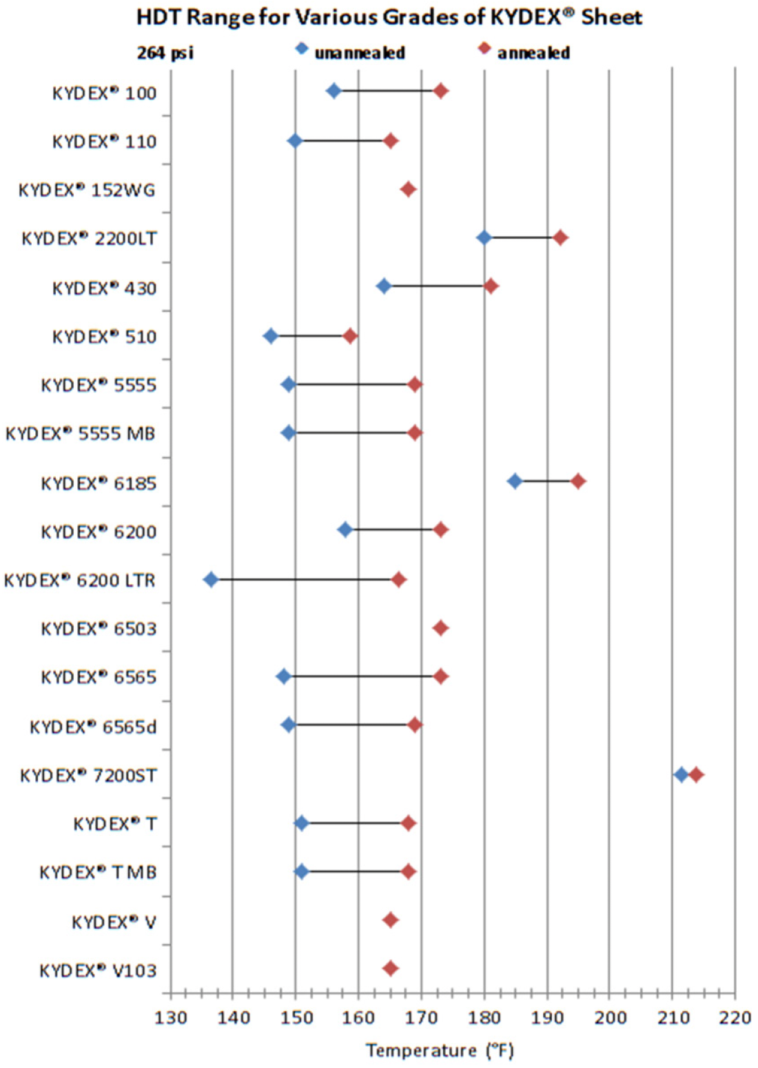 HDT RANGES FOR VARIOUS GRADES OF KYDEX® SHEET