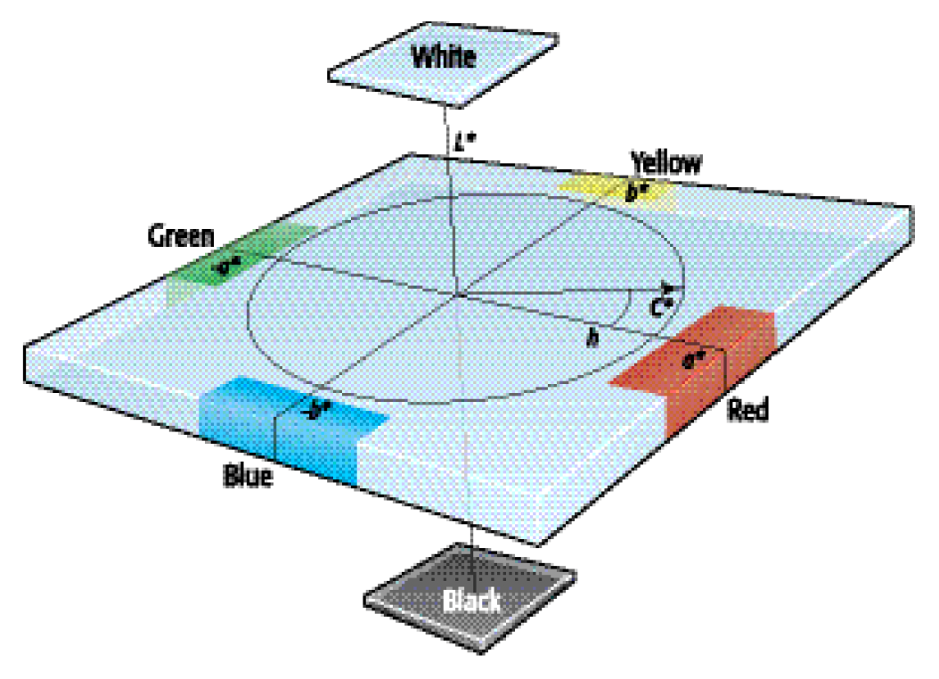 CIELAB colour tolerance is defined by the change in colour space on the L, a, and b axes where L is lightness, a is red/green, and b is yellow/blue. Limits placed on the L, a, and b create a rectangular tolerance box around the colour standard. This evenly segments colour space into grids and assumes change in appearance is uniform throughout colour space.