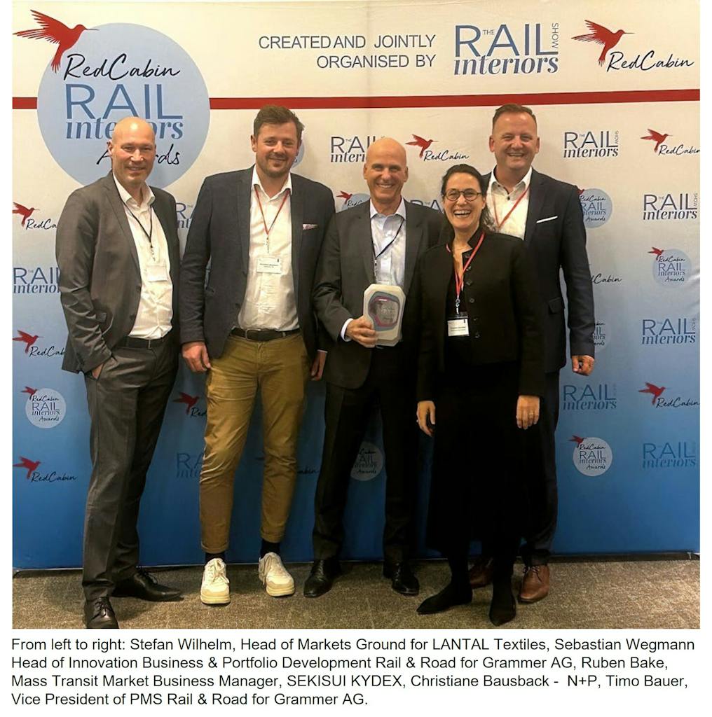 Grammer AG, Lantal Textiles AG, N+P Innovation Design, and SEKISUI KYDEX win the prestigious RedCabin Rail Interiors Award for Design Innovation of the Year for their collaboration to revolutionize rail travel with the Nordstern seating concept.